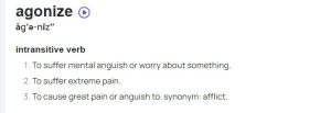 The Greek word ‘agonize’ is derived from the Greek word ‘agnia’, which means ‘a struggle for victory’, ‘exercise’, ‘gymnastics’, and’mental suffering’. The word was first used in the late 14th century to refer to mental suffering, especially that of Christ in the Garden of Gethsemane.0 The earliest meaning of agonize was ‘to torture’, but now it means something closer to ‘to torture one’s self.’ The verb ‘ago’ is often translated as ‘brought’ or ‘bring’ and can also mean ‘guide’ or ‘lead’. It is used in the books of Matthew, Mark, Luke, John, Acts, Romans, First Corinthians, Galatians, First Thessalonians, Second Timothy, Hebrews, and James.